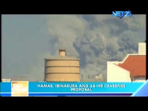 Hamas disregards 24 hour ceasefire description: Hamas disregarded the Palestinian-proposed 24 hour ceasefire, saying that they’ll only consider a ceasefire if there is an accompanying international mediation.