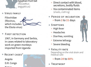 CONAKRY, Guinea (AFP) — Guinea has recorded the first known case of Marburg virus, a lethal cousin to Ebola, the UN’s World Health Organization (WHO) says. Here is a factfile on the disease (source: WHO, US Centers for Disease Control and Prevention). – What is Marburg? – Marburg virus is a highly dangerous pathogen that causes haemorrhagic fever. According to past outbreaks, the average fatality rate is 50 percent, in a range of 24-88 […]