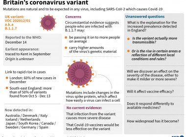 by Shaun Tandon with James Pheby in London and AFP bureaus Agence France Presse WASHINGTON, United States (AFP) — A worrying new variant of Covid-19 was detected for the first time Tuesday in the United States and Latin America as President-elect Joe Biden vowed he will significantly ramp up a fledging vaccination drive. The new strain, which first emerged in the UK, pushed Britain to a new daily record of coronavirus infections and led […]