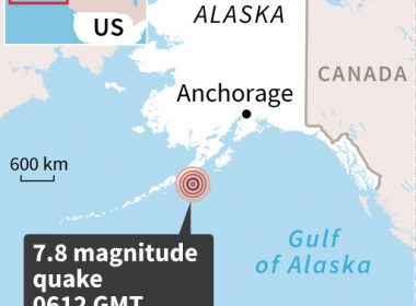 WASHINGTON, United States (AFP) — A 7.8-magnitude earthquake struck off the Alaskan peninsula, triggering a brief tsunami warning for areas within 200 miles (300 kilometers) of the epicenter. Sirens blared as residents were warned to move inland or to higher ground, reports said. The shallow quake hit at 0612 GMT Wednesday about 500 miles southwest of Anchorage, and around 60 miles south-southeast of the remote settlement of Perryville, the US Geological Survey said. “Based on […]