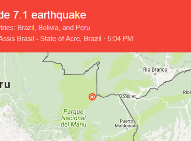 WASHINGTON, United States (AFP) — A powerful 7.1 magnitude earthquake struck along Peru’s border with Brazil on Friday, the US Geological Survey said. It said the quake hit at a depth of 609 kilometers (380 miles), on Peru’s eastern frontier with Brazil. The earthquake hit shortly after 0900 GMT, about 140 kilometers west of the Peruvian town of Iberia, the USGS said. © Agence France-Presse