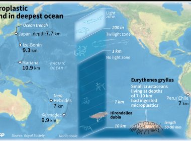 by Patrick GALEY Agence France Presse PARIS, France (AFP) — Animals living in the deepest ocean trenches have been found with plastic fragments in their gut, according to new research published Wednesday showing how manmade pollution reaches into the bowels of the planet. More than 300 million tonnes of plastics are produced annually, and there are at least five trillion plastic pieces floating in our oceans. Because deep-sea exploration is expensive and time-consuming, most studies […]