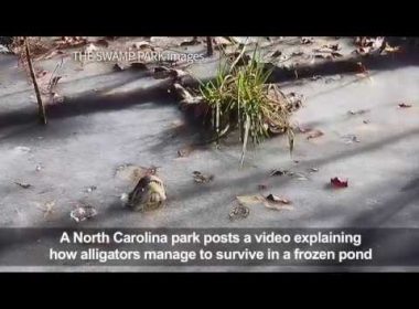 A North Carolina park has posted a video explaining how alligators survive in a frozen pond by allowing themselves to be frozen in place, with their noses just above the surface. (Video courtesy Agence France Presse TV)