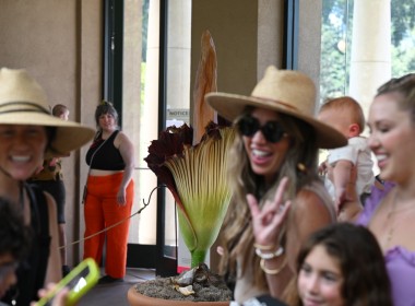 A rose by any other name might smell as sweet, but with a corpse flower — well, tinkering around the edges isn’t going to help. A giant Amorphophallus Titanium opened its less-than-delicate petals this week at the Huntingdon Library near Los Angeles, an event that only comes once every few years. And it is giving off a powerful reek. “It smells of rotting flesh,” says conservatory gardener Bryce Dunn. “It’s trying to attract carrion flies […]