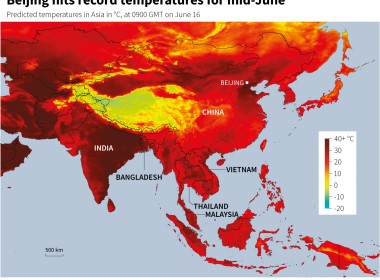 BEIJING, June 16, 2023 (AFP) – Temperatures in Beijing hit a record for mid-June of 39.4 degrees Celsius (103 Fahrenheit) on Friday, China’s meteorological authority said, warning the public to stay indoors. “At around 2:30 pm on June 16, the temperature at Beijing’s Nanjiao observatory hit 39.4 degrees Celsius, breaking the record high for mid-June,” the China Meteorological Administration (CMA) wrote in a social media post. The CMA said the coming days would see temperatures […]