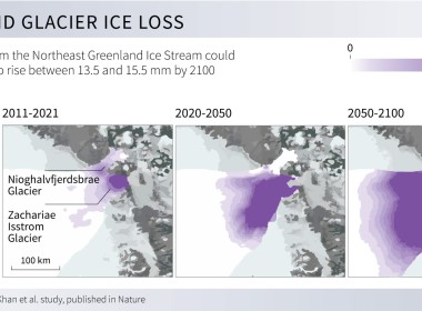 by Jenny VAUGHAN Agence France Presse Paris, France (AFP) — Part of Greenland’s ice sheet is thinning further inland than previously believed, which will likely lead to greater sea level rise by the end of this century, a new study found Wednesday. The findings pertain to a northeast section of the giant ice block covering, but the trend is likely happening elsewhere on Greenland and Earth’s other ice sheet, in Antarctica. The implications are worrying, […]