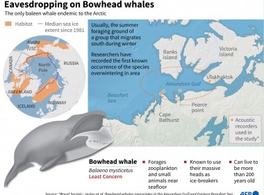 by Sara HUSSEIN TOKYO, Japan (AFP) — Eerie wails, explosive trumpets and ghostly moans. The sounds from the underwater recorders had a story to tell, even without a single intelligible word: the whales had stayed put. The recordings gathered during the 2018-2019 winter in the freezing cold Arctic waters off Canada proved that a population of bowhead whales had skipped their usual migration south. Scientists believe this behaviour — never previously detected — could be […]