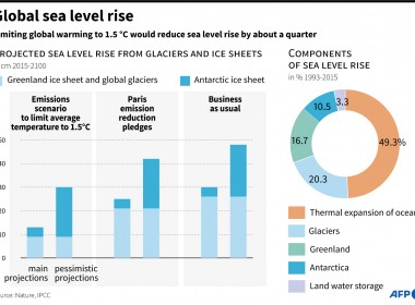 by Patrick GALEY PARIS, France (AFP) — Limiting global warming to 1.5 degrees Celsius could halve how much sea levels rise due to melting ice sheets this century, according to a major new study modelling how Earth’s frozen spaces will respond to ever-increasing greenhouse gas emissions. Since 1993, melting land ice has contributed to at least half of global sea level rise and scientists have previously warned that the vast ice sheets of Antarctica were […]