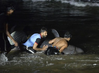 COLOMBO, Sri Lanka (AFP) — Sri Lanka’s navy and volunteers rescued 120 pilot whales stranded in the country’s biggest mass beaching, but at least two injured animals were found dead, officials said. Sailors from the navy and the coastguard along with local volunteers pushed back at least 120 whales by dawn Tuesday after a gruelling overnight rescue, navy spokesman Indika de Silva said. The school of short-finned pilot whales washed ashore at Panadura, 25 kilometres […]
