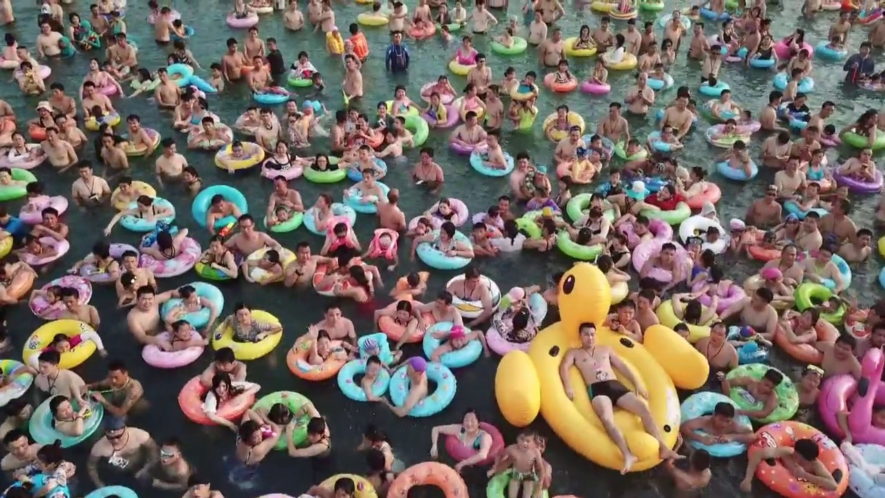 Watch: Hundreds dip in giant pool in China to beat the heat