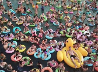 From above, the hundreds of people dipping in a giant pool in China, look like floating fruit loops. Hundreds crowded a giant pool for a respite from soaring temperatures as meteorologists renewed a yellow alert on Saturday with a heat wave persisting in most parts of the country. (Video courtesy Agence France Presse TV)