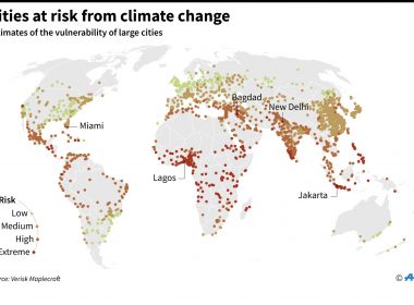 by Patrick GALEY Agence France-Presse PARIS, France (AFP) — Rapid population growth and poor infrastructure have put two out of three cities in Africa at “extreme risk” of the threats posed by climate change, according to a new analysis released Wednesday. With UN figures showing 86 of the world’s 100 fastest-growing cities are in Africa, experts warned nearly half of the continent’s GDP was exposed to the perils posed by our warming planet. The findings […]