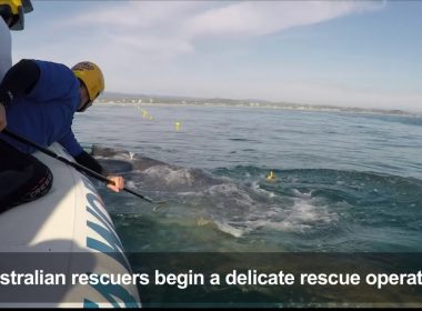 GOLD COAST, Australia (AFP) — A humpback whale calf is rescued after getting entangled in a shark net off the Gold Coast for some two hours. https://youtu.be/ov_f_3Ta6kc