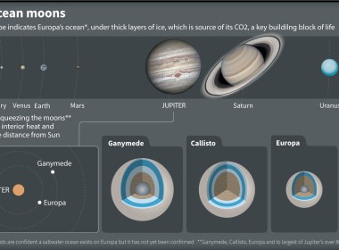 PARIS, Sept 21, 2023 (AFP) – Carbon dioxide detected on Jupiter’s moon Europa comes from the vast ocean beneath its icy shell, research using James Webb Space Telescope data indicated on Thursday, potentially bolstering hopes the hidden water could harbour life. Scientists are confident there is a huge ocean of saltwater kilometres below Europa’s ice-covered surface, making the moon a prime candidate for hosting extra-terrestrial life in our Solar System. But determining whether this concealed […]