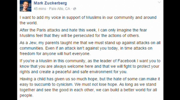 Facebook’s Zuckerberg speaks out in support of Muslims