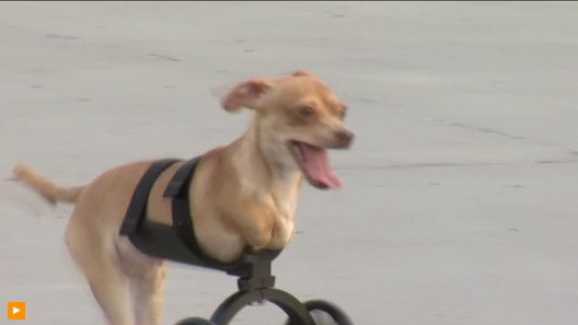 Scooter, a puppy born without front legs, seemed to smile as he wheeled across a playground on Friday (June 5). Scooter has been fitted with a wheeled prosthetic device that was made with a 3-D printer. Owner Tina Gans adopted Scooter when he was two months old. Now at almost ten months old, Gans said he’s hardly hindered by his handicap. “He doesn’t know he’s missing anything, so he’s an inspiration. I just want everybody […]