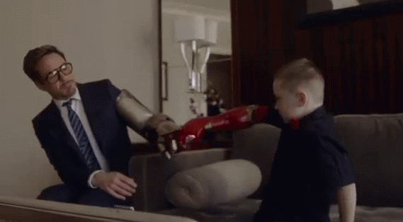 Robert Downey Jr. gives “Iron Man” arm to disabled boy