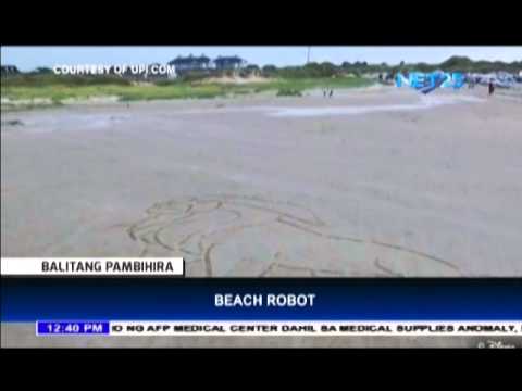 A turtle-shaped beach robot makes sand art in Switzerland.