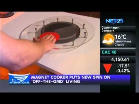 A self-contained cooking device makes use in-built magnets that spin to generation induction.