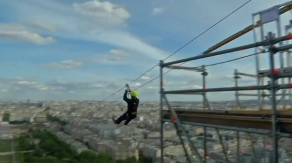 A giant zip wire is installed on Paris’ Eiffel Tower for adrenaline junkies