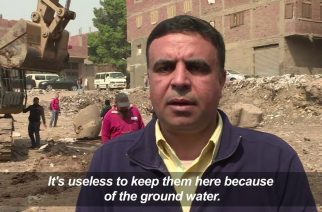 An Egyptian-German team of archaeologists find an eight-meter statue submerged in ground water in a Cairo suburb that they say probably represents Pharaoh Ramses II, who ruled Egypt more than 3,000 years ago, as well as the upper part of a statue of Pharaoh Seti II, Ramses II’s grandson. (Courtesy AFPTV)