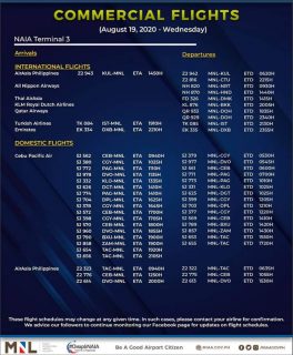 (Eagle News)--The Manila International Airport Authority released its list of operational commercial flights for Wednesday, Aug. 19: Flight schedules may…