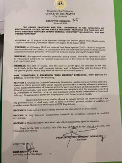 (Eagle News)--Food establishments in Manila may operate even when curfew is in place to allow them to "survive the COVID19…