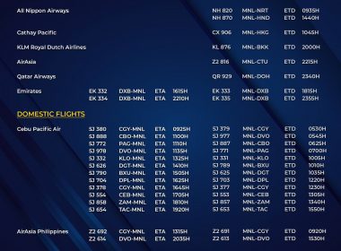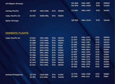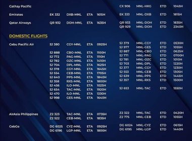 (Eagle News)–The Manila International Airport Authority has released its list of operational commercial flights for Thursday, July 30: Flight schedules may be subject to changes. Travelers were advised to confirm their flights on the day they are supposed to be scheduled, noting that only those with the confirmation will be allowed inside airport premises. Domestic flights are allowed provided there is approval from the local government unit concerned. International non-essential travel by Filipinos is […]
