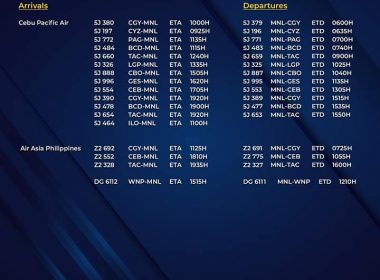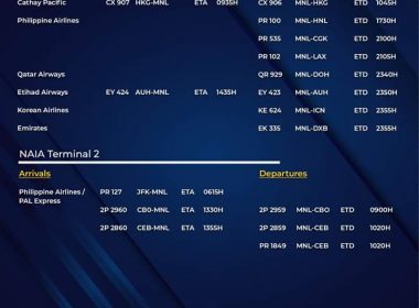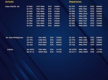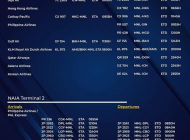 (Eagle News)-The Manila International Airport Authority has released its list of operational commercial flights. MIAA said the list was for Saturday, June 27: MIAA said flight schedules may be subject to changes. Passengers were advised to confirm their flights on the day they are supposed to be scheduled, noting that only those that have the confirmation will be allowed entry into the airport premises. Domestic flight operations are allowed provided there is approval by the […]