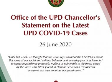 (Eagle News) –The University of the Philippines-Diliman on Wednesday, June 24, announced seven of its frontliners had tested positive for COVID-19. In a statement, UPD said the frontliners from Kanlungang Palma and the UP Health Service have already been isolated. Their contacts, UPD said, have also been traced by the UPHS Public Health Unit. Services will continue at Kanlungang Palma and the UPHS, following consultation with an infectious disease specialist, UPD said. ” Rest assured […]