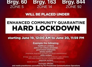 (Eagle News)–Several areas in Manila will be subjected to an “enhanced community quarantine hard lockdown” starting Friday, June 19. The Manila government said the lockdown in Barangay 60 in Zone 5; Barangay 163 in Zone 14; and Barangay 844 in Zone 92 starts at midnight and ends on Saturday, June 20, at 11:59 p.m. The local government said this was to pave the way for an expanded target testing. It said all residents should remain […]