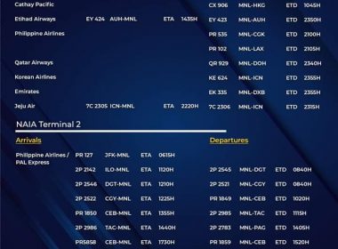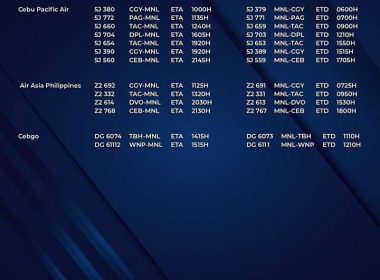 (Eagle News)–The Manila International Airport Authority has released its list of operational commercial flights. MIAA said the list was as of Thursday, June 18: Flight schedules may be subject to changes. MIAA urged passengers to ensure their flights are confirmed on the day they go to the airport. According to MIAA, only those with confirmed flights will be allowed entry into the airport premises. Domestic flight operations have resumed for some airlines but these are […]