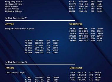 (Eagle News)–The Manila International Airport Authority has released its operational commercial flights. MIAA said the list was for Sunday, June 7: Flight schedules may be subject to changes. Earlier, several airlines announced the resumption of domestic flight operations following the shift of some areas, including Metro Manila, to a general community quarantine. Transportation Secretary Art Tugade had said the domestic flights were allowed for as long as there was approval from the local government concerned. […]