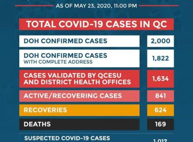 (Eagle News)–The number of coronavirus disease 2019 cases in Quezon City has reached 2000. According to the local government, based on Department of Health data, of the 2000, 1634 have been confirmed by the City Epidemiology and Surveillance Unit. Over 600, or 624, have recovered while 169 have died. Active cases have reached 841. Batasan Hills has the most number of COVID-19 cases so far, at 85. This was followed by Bahay Toro, at 62 […]