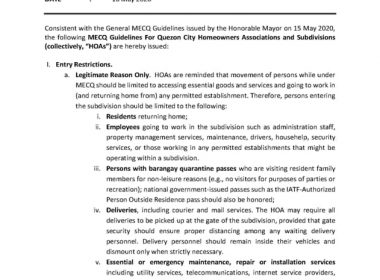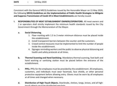 (Eagle News)–All meat establishments in Quezon City are ordered to extend their operations to a maximum of 12 hours during the modified enhanced community quarantine. According to the guidelines issued by the Quezon City government, this was to prevent overcrowding of customers within a particular timeframe. The practice of rotating schedules for shoppers was also encouraged, and should be done in coordination with the concerned barangay. Establishments were also advised to prepare for contactless transactions. […]