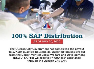 Families left out due to limited funds to receive cash aid from local gov’t (Eagle News)–The Quezon City government has completed the distribution of the national government’s Social Amelioration Program to qualified families, city administrator Michael Alimurung said. According to Alimurung, a total of P3.02 billion were distributed to 377,584 families. He said some P23.5 million have been returned by residents who already received financial assistance from the Social Security System, Department of Labor and […]