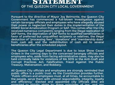 (Eagle News)–The Quezon City government has initiated a probe of some barangay officials and employees who allegedly abused their power or neglected their duties in the distribution of cash aid under the Social Amelioration Program. In a statement, the local government said it would issue show cause orders in the coming days following complaints ranging from the illegal replication of SAP forms, the deprivation of SAP forms to qualified beneficiaries in favor of preferred but […]