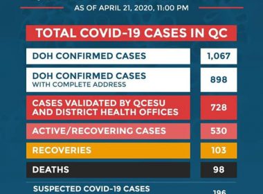 (Eagle News)–The number of coronavirus disease 2019 cases in Quezon City has reached 1067. The local government said of the 1067 based on Department of Health data, 728 were validated by the Quezon City Epidemiology and Disease Surveillance Unit and district health centers. Barangay Batasan Hills had the most number of cases so far, with 32. It and Tandang Sora had the most number of deaths, at six each. Among the close contacts of COVID-19 […]