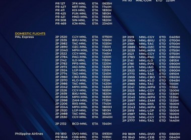(Eagle News) — The Manila International Airport Authority has released its list of operational commercial flights for Tuesday, Nov. 9: Flight schedules may change at any given time. MIAA advised passengers to coordinate with their airlines as only those with the confirmation will be allowed entry into the airport. Tourists are still not allowed entry into the country, according to the Bureau of Immigration. Metro Manila is under a COVID-19 alert level 2.