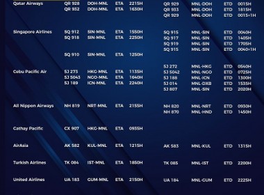 (Eagle News) — The Manila International Airport Authority has released its list of operational commercial flights for Thursday, Nov. 11: Flight schedules may change at any given time. MIAA advised passengers to get confirmation of their flights prior to the scheduled travel as only those with the confirmation will be allowed entry into the airport. The Bureau of Immigration has said tourists are still not allowed to enter the country. Metro Manila is under a […]