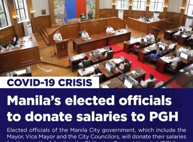 (Eagle News) – Manila’s top officials will donate their entire salaries for the month of April to the Philippine General Hospital (PGH), one of the country’s COVID-19 referral hospitals. In a statement posted at the Facebook Page of the Manila Public Information Office, Manila Mayor Isko Moreno Domagoso said that about P4.7 million worth of their salaries combined will be turned over to the PGH. Aside from him, those who agreed to donate their salaries […]
