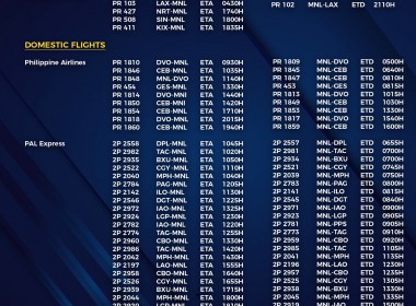 (Eagle News) — The Manila International Airport Authority has released its list of operational commercial flights for Saturday, Oct. 30: Flight schedules may change at any given time. MIAA advised passengers to coordinate with their airlines as only those with the confirmation of the travel will be allowed entry into the airport. The Bureau of Immigration has said tourists even from countries on the Philippines’ green list are still not allowed to enter the Philippines.