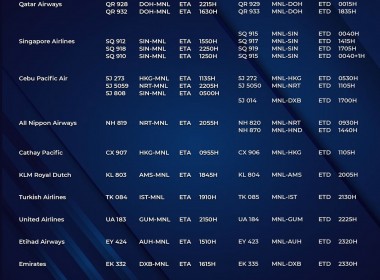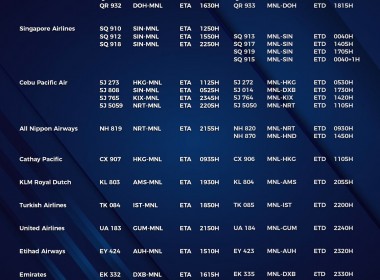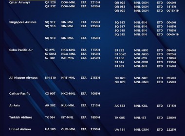 (Eagle News) — The Manila International Airport Authority has released its list of operational commercial flights for Wednesday, Nov. 3: Flight schedules may change at any given time. MIAA advised passengers to coordinate with their airlines as only those with the confirmation of travel will be allowed entry into the airport premises. The Bureau of Immigration has said tourists are not allowed into the country even if they come from countries on the Philippines’ green […]