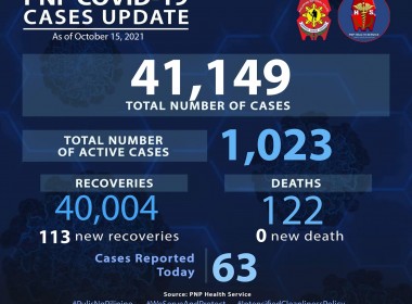 (Eagle News) — Sixty-three more COVID-19 cases have been reported among police personnel. The Philippine National Police said the additional cases pushed the total PNP cases to 41,149. Of these, 1023 were active. Over 100–or 113 recoveries–were added, pushing the total number of PNP COVID-19 recoveries to 40,004. No additional deaths were reported, which means the PNP COVID-19 death toll remains at 122. The police are among the country’s frontliners amid the COVID-19 pandemic. The […]