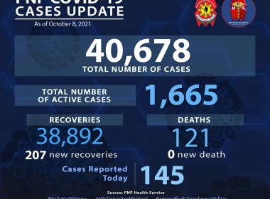 (Eagle News) — Over 100 more police personnel have tested positive for COVID-19. The Philippine National Police said the additional 145 cases pushed the total cases in the organization to 40,678. Of these, 1,665 were active. Recoveries rose to 38892 with the addition of 207 recoveries. The COVID-19 death toll in the PNP is at 121, with no additional deaths reported. The police are among the country’s frontliners amid the COVID-19 pandemic. President Rodrigo Duterte […]
