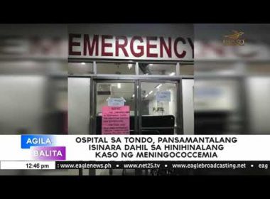 (Eagle News) — A hospital in Manila temporarily closed its emergency room starting Wednesday, Jan. 24, due to a suspected meningococcemia case. The Gat Andres Bonifacio Memorial Medical Center made the announcement on its Facebook account. According to the hospital, the temporary closure was “part of standard safety procedure and infection control protocol.” “Rest assured that all precautionary measures have been implemented to prevent any risk of spread of infection,” it said, noting that the […]