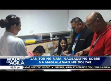 (Eagle News) — The Manila International Airport Authority on Wednesday, Jan. 16, hailed one of its employees after he returned an envelope containing a “significant amount of dollar bills” that he found while on duty. MIAA general manager Ed Monreal lauded airport janitor Jeffrey Almoguerra, 30, and a father of two, for his honesty when he took the envelope he found at the vicinity of a foreign exchange counter in the Ninoy Aquino International Airport […]