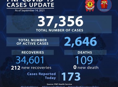 (Eagle News) — Over 100 more COVID-19 cases have been reported among police personnel. The Philippine National Police said the additional 173 cases pushed the PNP COVID-19 total to 37356. Of these, 2646 were active. Recoveries rose to 34601, including the additional 212 recoveries. The PNP COVID-19 death toll is at 109, with no additional deaths reported. President Rodrigo Duterte has said uniformed personnel should be among the priorities in the Philippines’ COVID-19 vaccination drive. […]