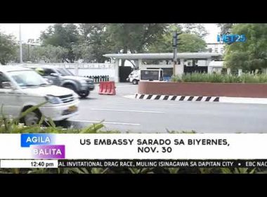 (Eagle News) — The United States Embassy in Manila will be closed to the public on Friday, Nov. 30. In a statement, the US Embassy said its affiliated offices will also be closed in observance of Bonifacio Day. It said services in those offices will resume on Monday, December 3. https://youtu.be/7UpGg6nNdHg