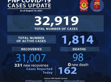 (Eagle News) — Over 100 more COVID-19 cases have been reported among police personnel. According to Philippine National Police data, the additional 163 cases pushed the total PNP COVID-19 cases to 33184. Of these, 1768 are active. Recoveries rose to 31317 including the additional 152 recoveries. The PNP COVID-19 death toll remains at 99, with no additional deaths reported. The police are among the country’s frontliners, and are among those prioritized in the country’s ongoing […]